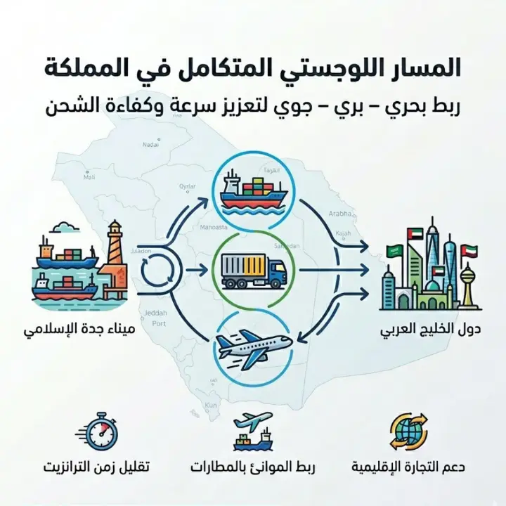 أعلنت السعودية عن إطلاق مسار لوجستي متكامل يجمع بين النقل البحري والبري والجوي عبر موانئ الساحل الغربي للمملكة، في خطوة تهدف إلى تسريع حركة الشحن وتقليل زمن العبور للبضائع الموجهة إلى دول الخليج والأسواق الإقليمية.